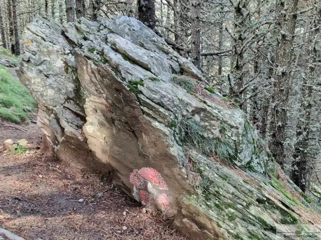 C’est en flânant du côté du col d’Ordino que nous sommes tombés par hasard sur ce sentier à la fois simple et enchanteur : la Ruta dels Bolets. Dès les premiers pas, on est plongés dans une ambiance unique : le calme de la montagne et surtout… les grandes sculptures en bois en forme de champignons et les peintures sur pierre qui jalonnent le chemin . Les enfants s’amusent à les chercher comme dans une chasse au trésor, et les adultes s’émerveillent tout autant devant le travail artisanal.