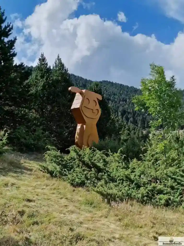 Et comme si cela ne suffisait pas, la promenade nous a offert une autre surprise : la découverte du Tamarro de Canillo. Et pour ceux qui ne connaissent pas, les Tamarros sont des créatures légendaires d’Andorre, petits gardiens de la nature que l’on retrouve cachés dans chaque paroisse. Les enfants sont souvent surexcités à l’idée de les trouver. Je dois avouer que même les grands retombent vite en enfance devant ces petites mascottes pleine de malice.